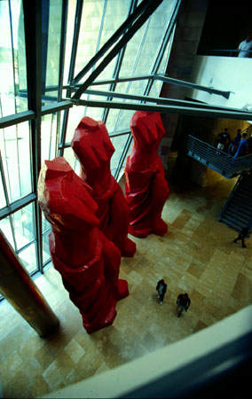 MUCH, too much for my taste, is being said about Frank Gehry's Guggenheim Museum in Bilbao. It shows how easily the masses are led by publicity, that Bilbao, in the heart of Basque country, is enjoying a wave of tourism. People come to see this new, striking building. They stand in the hot Iberian sun waiting to get in because the design fails to provide any shade for the waiting throngs. Bilbao may be north of New York, and both are Atlantic ports, but Bilbao is hotter. Inside, the structure gets in the way and is all too visually obvious; doesn't Gehry understand the principle of the cantilever?