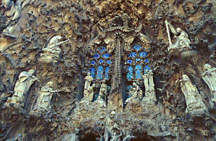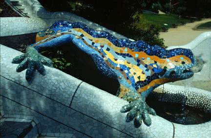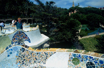 Bilbao is Basque country, but it is surrounded by Catalonia and is Spanish for all the separatist activity. The great architect of Spain, specifically Catalonia, is Antonio Gaudi. Perhaps the most curvilinear architect (Bruce Goff and John Lautner can give him a chase) of his time, His masterpiece, the Cathedral of the Sagrada Familia (Sacred Family) in central Barcelona is now heading to completion under a furious construction schedule. Nearby in Western Barcelona is the Parc Guell. This reveals Gaudi at his most colorful and curvaceous. This is what Catalonia and northern Spain is all about. The bright sun demands bright colors.
